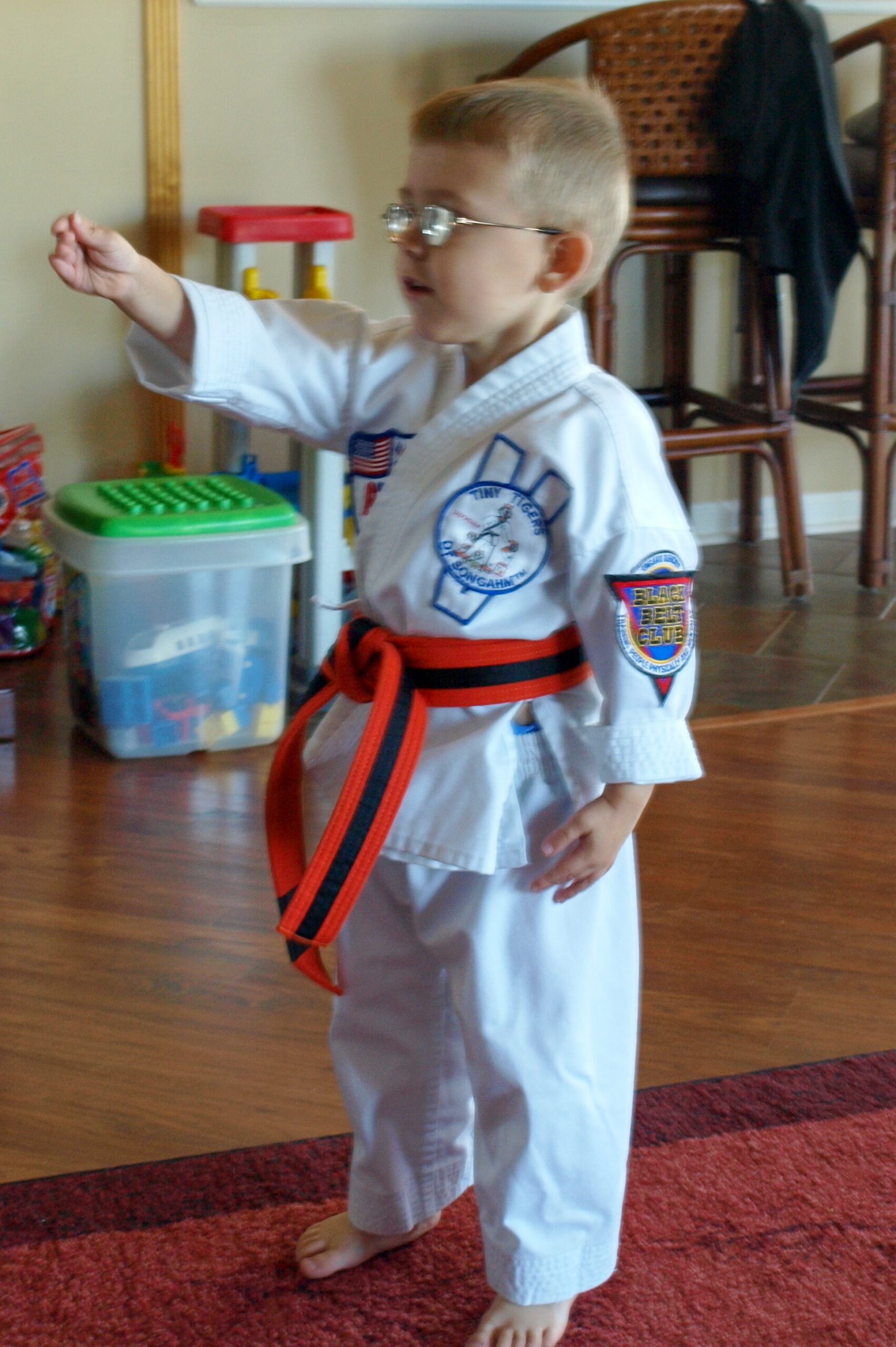 When we arrived home it was pouring down rain. I shuffled him inside and left the door ajar. I told him to leave it open so I could cart the soggy groceries in as quickly as possible. As I race to the door loaded down with bags, little T.Puzzle waits to the last possible moment as my feet are centimeters from the threshold, gives me an evil smile and slams the door in my face.