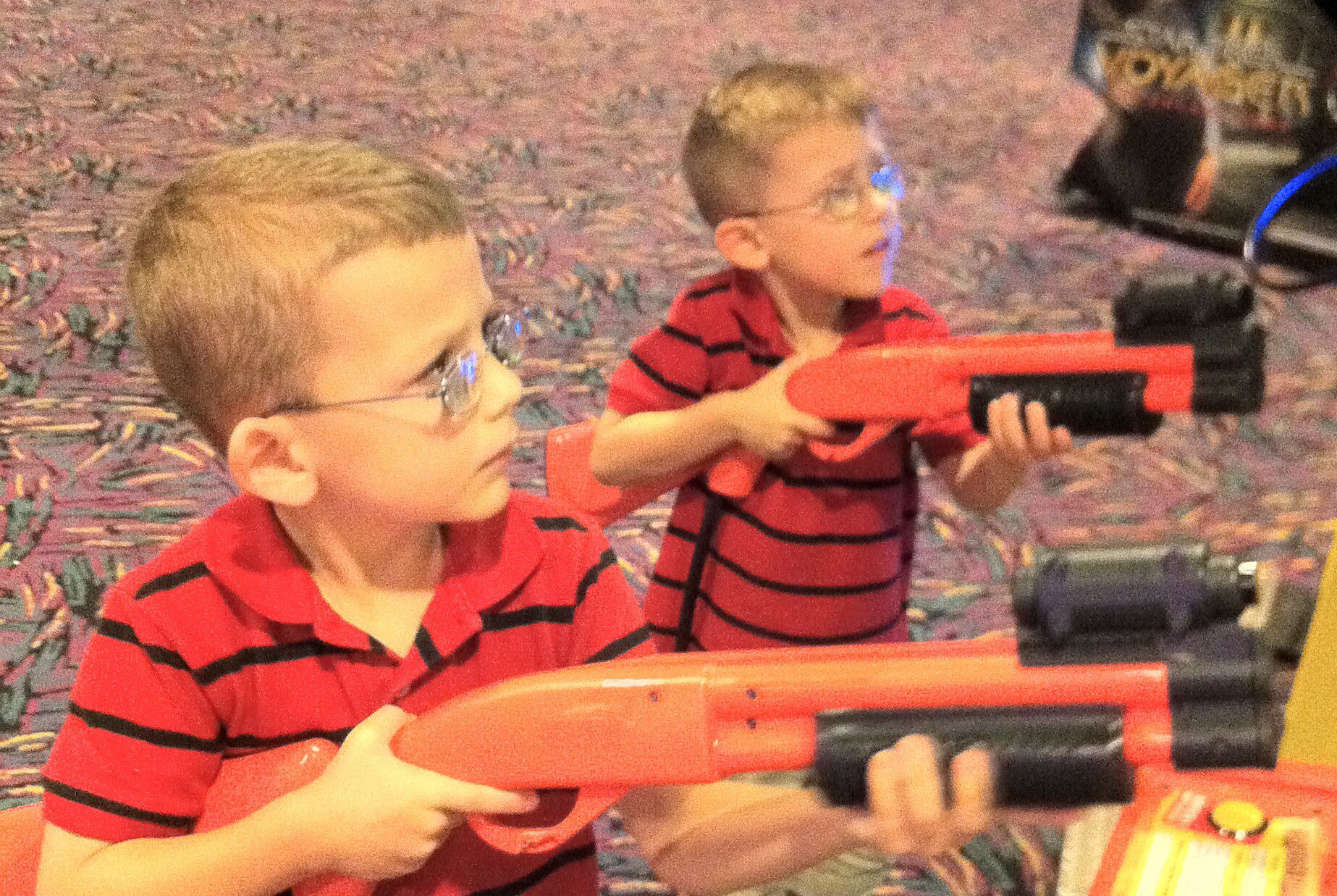 This same excitement carried through the rest of our day. They boisterously enjoyed our afternoon movie of ‘The Adventures of Tin Tin‘. They even took the dino hunting video game in the theater lobby to a whole new level of player concentration.