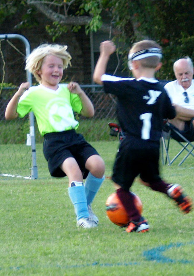 This summer Mad Dog coached the boys in a winning season of 3v3 soccer. When he initially moved T.Puzzle up a division, I balked. The first set of games that I watched my 5 year-old go up against seasoned 6 and 7 year-olds, I almost fainted from anxiety. Thankfully, the little man held his own. I guess having a big brother beat you up on a daily basis toughens you up. It took me to about mid-season to relax a little (I’m talking a tiny, little bit) and enjoy the games unfolding before me. I still never enjoyed when T.Puzzle would be launched across the field because of his lack of body weight. I did love that no matter how many times he got knocked to the ground, he always got back up and back in the game.