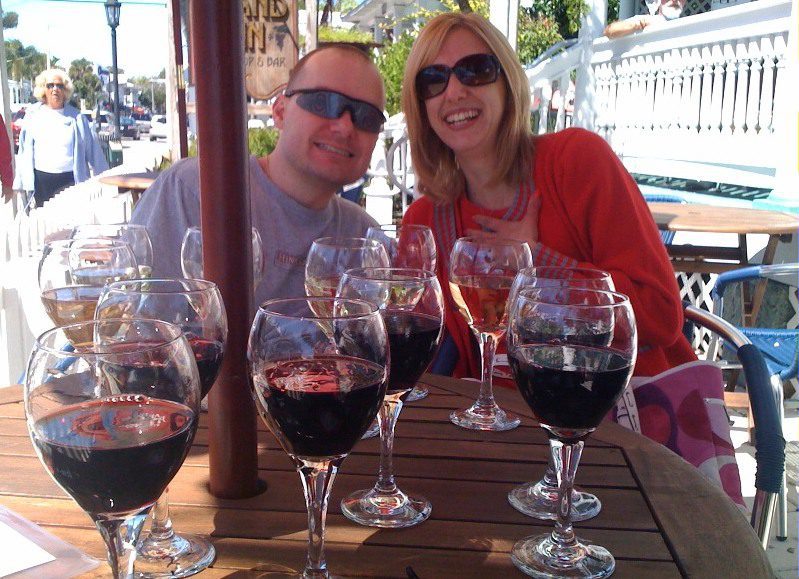 4. Wine bars in Key West offer the best deals on wine tastings. I learned that a ‘flight’ of wine (which was thought to be three glasses of TINY tastes of wine) will get you shnookered in about ten minutes flat. Note this pic of our table after me, Mad Dog and my in-laws finished our ‘flight’. Best vacation ever!!