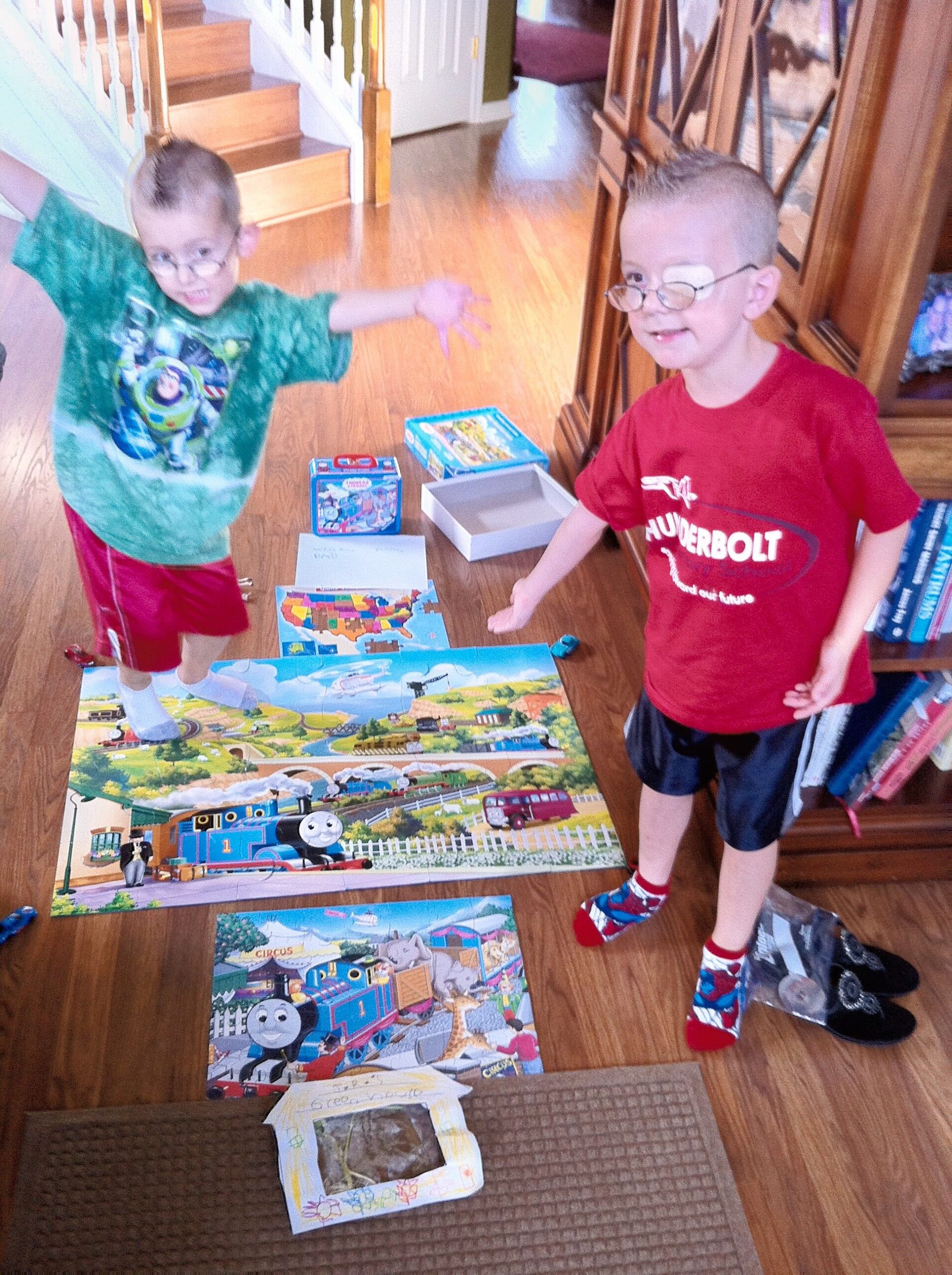 I went upstairs to inform the boys that dinner was ready. They were watching T.Puzzle’s current favorite Thomas the Train movie, ‘Hero of the Railways’. They had not had a snack and T.Puzzle had taken a lengthy nap (hallelujah!) so I suspected they were famished.
